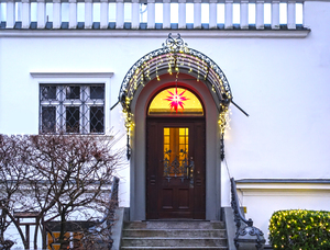 2 grade account_circle christmas decorated entrance