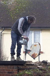 Workman with hammer-drill