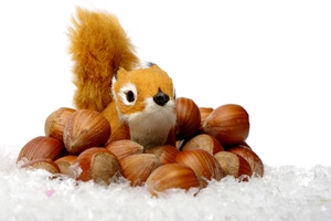 Esquilo de pelúcia com nozes