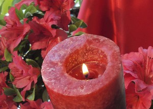 vela vermelha com flores vermelhas