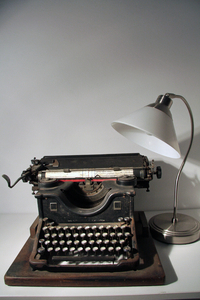 Máquina de escrever e lâmpada do vintage