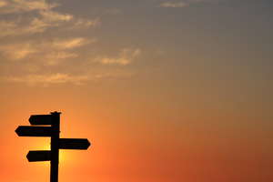 guia de pós guildelines madeira maneira orientar para símbolo tabuleta direção em branco estrada flechas informação marcador sinal apontador caminho direto flecha instruções poste de sinalização aço metal Coruna Espanha Galicia céu guia-post indicação laranja monte nuvens painel parque pedro pôr do sol san sign-post sol azul branco ilustração preto silhueta sombra