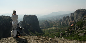 Windows antigo céu meteoros mosteiro parede pedras verão Grécia cinza famoso grego natureza paisagem rocha rochas