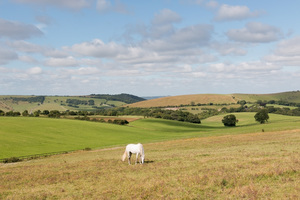 Inglaterra Inglês South Downs animal branco campos cavalo colinas céu fazenda grã bretanha mamífero nuvens paisagem pasto pastoral pecuária prados rural sussex verde verão animais azul campo ovelha pacífico pastar prado tranquilo banco carvalho lagoa mola pato pista plácido portão pássaro quercus água árvore aldeia beleza bonito bosque colina grama vista conduzir líder natural natureza seguir trio três vaca cerca cume declive paz terra andar caminho exercício parque nacional passeio viagem cordeiros domesticado mamíferos nuvem vale árvores