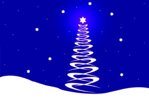 White Christmas Tree on Blue