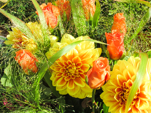 colourful dahlia and roses