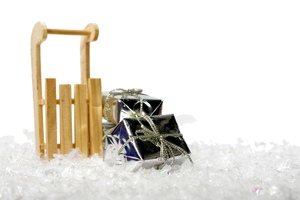 Sledge in snow with gifts