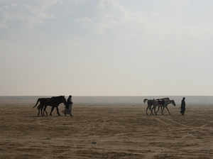 Riding horses in the desert