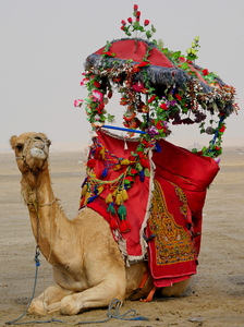 Riding camel in the desert