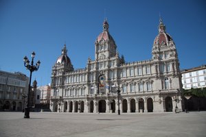 City Hall 2, Espanha, Galicia, arquitetura, azul, bandeira, cidade, cidade, clássico, conselho, céu, flags, natureza, palácio, quadrado, salão
