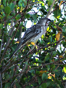 camuflar doce, Anthochaera carunculata, acácia vermelho, agressivo, amarelo, barulhento, camuflagem, castanho-acinzentado, choque, comedor de mel, comum, defensivo, fauna, gillbird, grade, grande, honeyeater, honeyeater wattled, jardins, ladrar-bird, listras brancas, marrom-acinzentado, marrom-acizentada, muito difundido, nativo australiano, nectivorous, o que há de horas, plumagem marrom-acinzentada, proeminente, pássaro, pássaro nativo, pássaro vermelho acácia, remendo rosto branco-prata, severo, ventre amarelo, vida selvagem, vime
