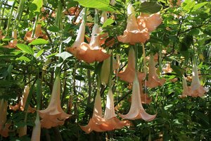 Trombetas do anjo, Brugmansia, O anjo de, aguentar, anjo, anjos, arbusto, caídas, enforcamento, espetacular, flor, flores, grande, laranja, madeira, natureza, pendulant, planta, solanaceae, trombeta, trombetas, vistoso, árvore