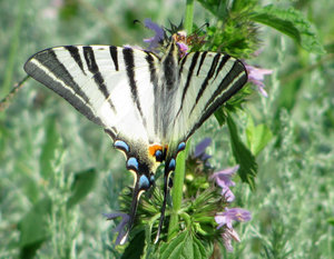 borboleta na flor 2, Iphiclides Podalirius, borboleta, cauda de andorinha, escasso, flor, flor, inseto, listrado, sail andorinha, swallowtai pear-tree, verde