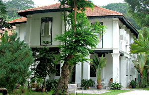 bungalow tropical, Cingapura, Você pode, Windows, aparência, arquitetura, arquitetônico, banco, banco, bangalô, branco, brilhante, casa, casa, colonial, construção, contrastar, de dois andares, destacar-se, flora, folhagem, grama, herança, história, histórico, janelas de venezianas, jardim, jardins, legal, luz, luz solar, palmas, pilares, plantas, renovado, residencial, residência, sombra, sombras, tropical, trópicos, vasos de plantas, vasos de plantas, verde, verdura, visível, árvores
