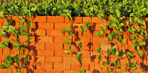 alvenaria creepered, alvenaria, brilhante, contrastando, contrastar, crescimento, espalhando, flores, folhagem, folhas, formas, gomos, laranja, luz, luz do sol, luz solar, parede, parede de tijolos, propagação, sombras, superfície, superfícies, tijolos, trepadeira, vegetação, vem, verde, verdura, vermelho
