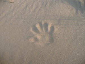 Impressão, areia, areias, direito, duna, formato, férias, handprint, impressão, lembrança, memória, mão, na praia, praia, textura, traço