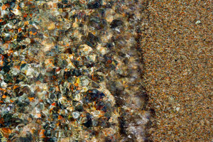 Waters Edge 2, Whitewater, areia, arenoso, claro, costa, córrego, fluir, fundo, lavagem, ondas, ondulações, ondulações, ou, praia, rubor, salpico, seixos, textura, wavelets, água