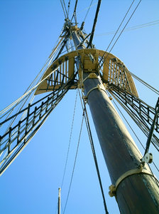 Mast 1, Escócia, arregaçar, azul, barco, cordas, cruzeiro, céu, descoberta, enrolar, grandes, mastros, navegar, navegação, navio, oceano, ou, trela, vela