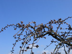 botões de primavera, arborescente, azul, céu, gomos, knobbed, mola, natureza, nodoso, oferta, pétalas, ramificada, ramo, ramos, rural, sem nuvens, árvore, árvores