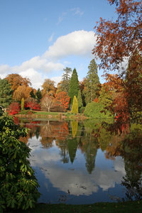 Lakeside vinheta, Inglaterra, calma, céu, folha, folhas, lago, nuvem, outono, parque, paz, reflexão, sussex, tranquilo, água, árvore