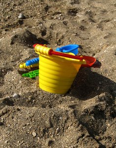 jogar na areia 1, areia, balde, beira-mar, brinquedo, costa, criança, crianças, diversão, férias, férias brinquedos, jogar, miúdo, ou, playtime, praia, spades, verão