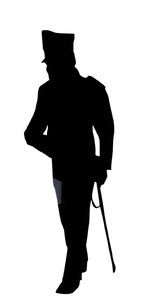 Soldado, andar, branco, cansado, dever, espada, exército, foi, grande, história, histórico, isolado, lição, machucar, pistola, preto, recortar, rifle, silhueta, tem, uniforme