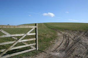South Downs 9, Inglaterra, baixos, campo, campo, colina, céu, grama, mola, nuvem, paisagem, pista, portão, relvado, rural, sul, sussex, vista