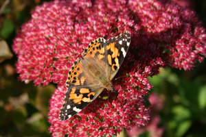 Lady on ice, Sedum, abdômen, antena, asa, borboleta, cardui, cynthia, gelo, inseto, lepidoptera, país de Gales, pintado, planta, resto, rosa, senhora, tomar sol, tórax
