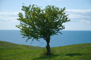 Árvore no Green Hills, Sundland, Suécia, colina, colinas, céu, grama, oceano, ou, skane, solitário, verde, verão, árvore