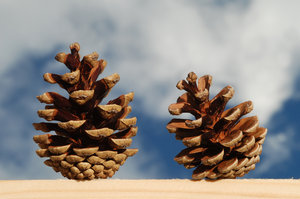 Pinhas, azul, cone, cones, céu, fundo, pinheiros, pinho, árvore