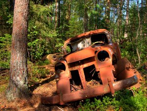 Disintegration - HDR, 50 's. hdr, Nyberg, carro, carros, desintegração, enferrujado, forrest, idade, madeira, passagem, paz, senior, tempo, usado, velho