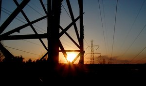 Definir o poder 1, Pylones, crepúsculo, eletricidade, linhas, não, powerline, powerlinies, pôr do sol