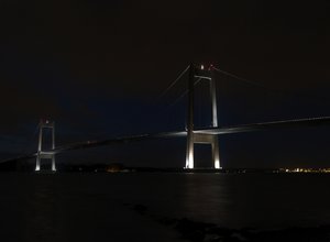 Nightbridge, Nyberg, caminho, escuro, estrada, grandes, maneira, noite, noite, ponte, reflexão, suspensão, tempo, travessia