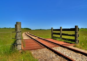 Cattlegrid - HDR, Nyberg, azul, caminho, cattlegrid, céu, estrada de ferro, faixas, gado, grade, hdr, portão, travessia, trem, trilho, verão