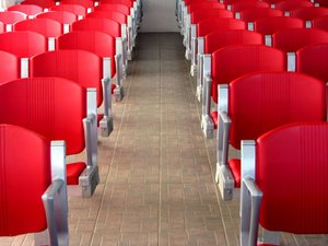 Assentos, por favor!, assento, cadeira, carregamento, embarque, espera, plástico, vermelho
