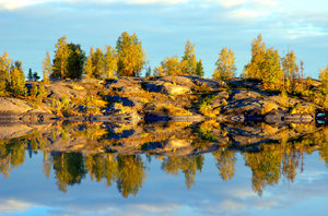 Yellowknife Reflexões 2, Canadá, Yellowknife, cair, outono, paisagem, reflexão, rocha