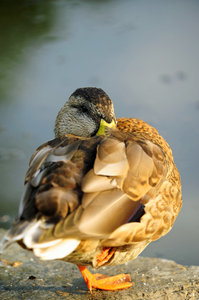 Dormir Duck 1, Anatidae, anas, aves, bill plana, charlatão, corpo deprimido, domesticado, natação, palmípede, pato, pernas curtas, selvagem