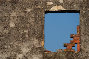 Abertura da parede, argamassa, buraco, decadência, deteriorado, gesso, parede, parede de tijolos, tijolos, velho