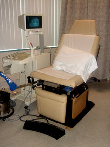 OB GYN, cadeira, clínica, estribos, ginecologista, médico, médico, ob gyn, obstetra, ultra-som