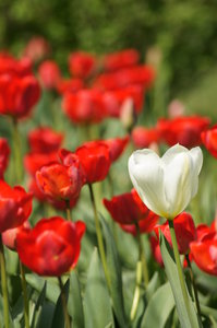 tulipas, Tulipa, branco, contrastando, contrastar, destacando-se, diferente, diferença, floração, flores, jardim, mola, natureza, papel de parede, planta, plantas, sol, solitário, sozinho, tulipa, tulipa branca, tulipas, tulipas vermelhas, um, verde, vermelho, à parte, único