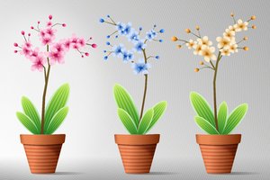 Flores em Pot 6, amarelo, ame, arte, azul, flor, florescer, fundo, gráficos, lata, listra, mola, oferta, orquídea, orquídea, papel de parede, projeto, ramo, rosa, verde, verão