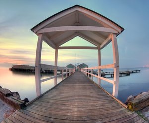 Seabath Pública - HDR, Nyberg, banho, calçadão, costa, costa, entrada, fisheye, hdr, litoral, oceano, ou, pier, portal, público, sol, sunraise