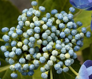 Hortênsia, azul, centro branco, hortênsia, jardim, perene, verão