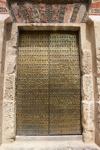Porta de bronze velha, Espanha, antigo, bronze, cordoba, decorativo, entrada, esculpida, histórico, mesquita, metal, ornamentado, parede, pedra, por, velho, viga