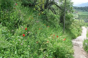Caminho Hillside, ANDALUCIA, Espanha, caminho, espanhol, flores, natural, natureza, papoilas, papoula, papoula, pista, selvagem, verde, vertente