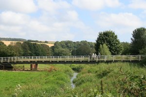 Passarela, Inglaterra, andar, campo, córrego, grã bretanha, gás, lazer, natural, natureza, paisagem, pantanoso, passarela, passeio, pessoas, ponte, ponte pedonal, prado, relógio, rio, rural, suporte, sussex, verão, vista