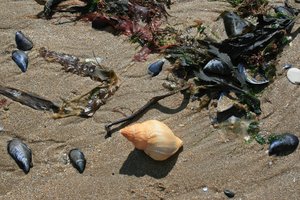Sealife na praia, Inglaterra, alga, algas, animal, bivalve, concha, concha, costa, costa, fundo, grã bretanha, kent, molusco, natural, natureza, ou, praia, textura