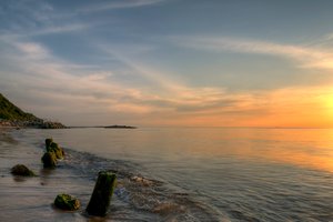 Quebra-mar - HDR, Nyberg, alga, areia, costa, hdr, litoral, logar, oceano, onda, ou, pedra, pedras, posto, praia, pôr do sol, quebra-mar, rocha, rochas, subduer onda, vertical, verão, água