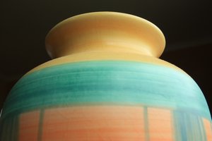 Vaso, amarelo, cerâmica, colorido, decorativo, jarra, laranja, perto, preto, vaso, verde