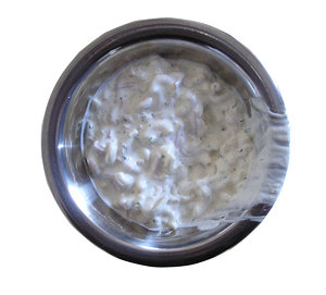Molho branco, branco, cebola, comida, iogurte, molho, tigela